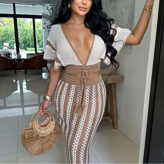 SIBYL HOLLOW OUT STRIPE KNIT SET