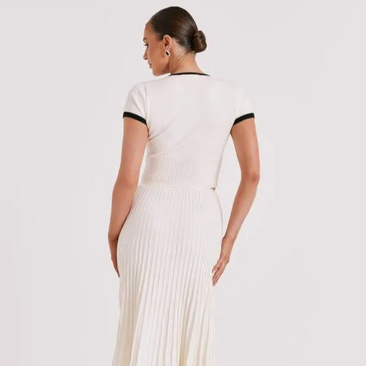 LENA SPLICED PLEATED SKIRT KNIT SET